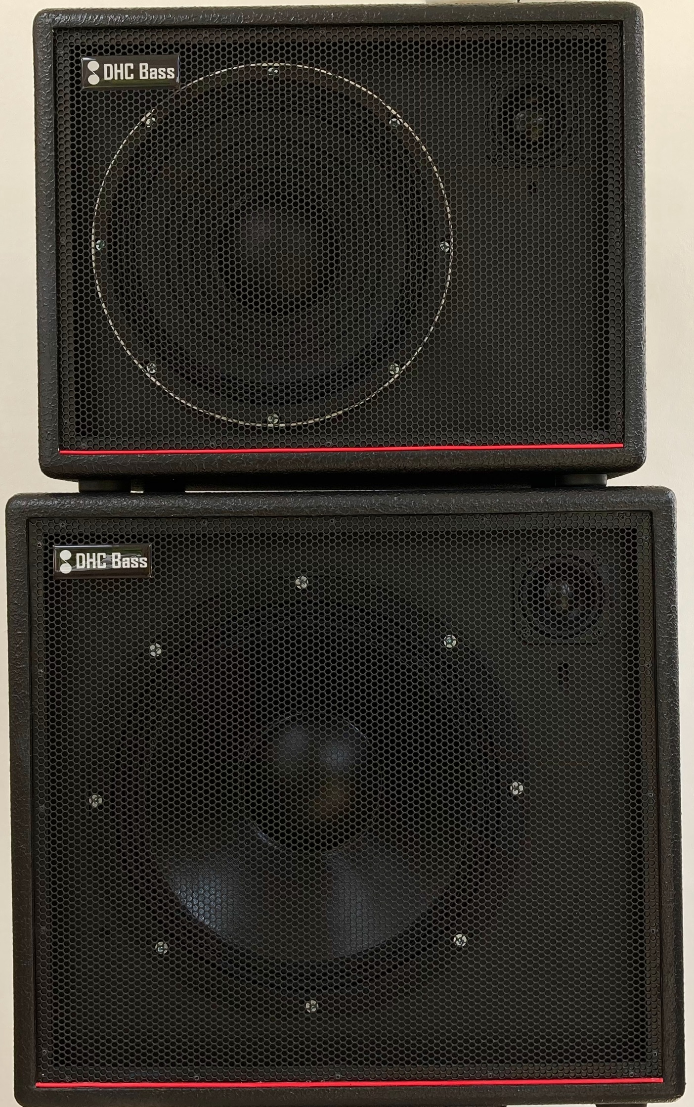 I call this a “Bedroom Bass” cab. Its a full range all out bass cab but sounds great at low practise volumes and yet will give enough for small venues and rehearsal rooms. The bass driver is a sturdy alloy chassis cambric surround driver with a fully vented magnet so fits into the DHC ethos of “cool” drivers and is ready to work at its max if required. The Hf driver is the same as used in the higher power cabs so will take all the top end you can slap to it.